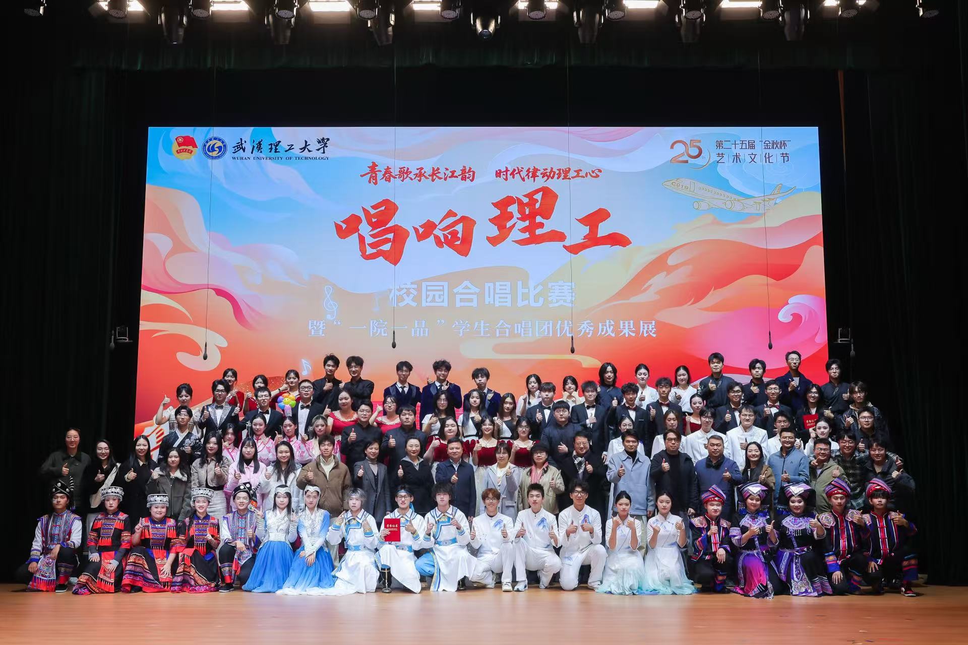 “金秋杯”艺术文化节二十五载弦歌不辍,已成为我校文化艺术的标志性品牌。本次第二十五届“唱响理工”校园合唱比赛暨“一院一品”学生合唱团建设优秀成果展,是学校全面落实“5.30”行动计划,推进学校“美育浸润行动”和“五育并举”的重要举措。下一步,学校将创新美育工作思路,持续推进“一院一品”学院合唱团建设,推动美育和学科教学的有机融合,提升学生美育意识和美育素养,讲好武汉理工故事、传播武汉理工声音、塑造武汉理工特质,营造良好的校园文化氛围。